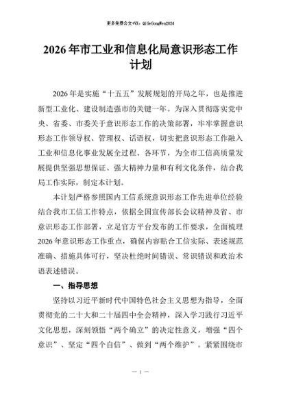 / 【七哥公文】2026年:2026年市工业和信息化局意识形态工作计划+更多免费公文+VX:QiGeGongWen2024