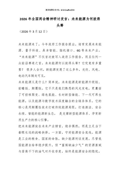 【七哥公文】2026年:2026年全国两会精神研讨发言:未来能源为何拔得头筹_副本+更多免费公文+VX:QiGeGongWen2024