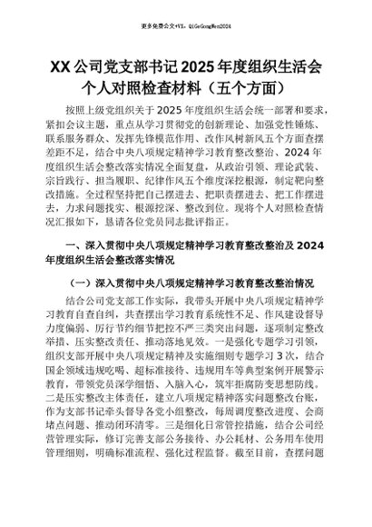 【七哥公文】2026年:XX公司党支部书记2025年度组织生活会个人对照检查材料(五个方面)+更多免费公文+VX:QiGeGongWen2024 - 七哥-AI智库