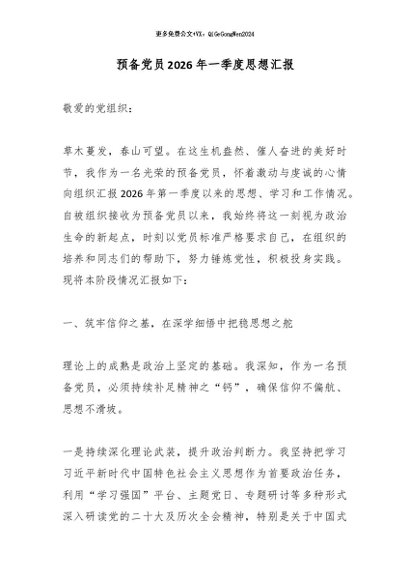 / 【七哥公文】2026年:预备党员2026年一季度思想汇报+更多免费公文+VX:QiGeGongWen2024