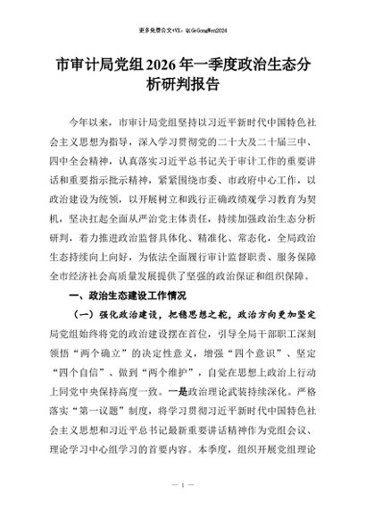 【七哥公文】2026年:市审计局党组2026年一季度政治生态分析研判报告+更多免费公文+VX:QiGeGongWen2024
