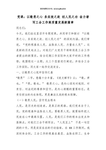 【七哥公文】2026年:党课:以敬畏之心 务实效之政 创人民之功 奋力谱写工会工作高质量发展新篇章+更多免费公文+VX:QiGeGongWen2024