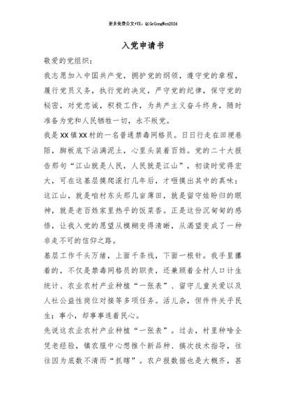 【七哥公文】2026年:入党申请书+更多免费公文+VX:QiGeGongWen2024