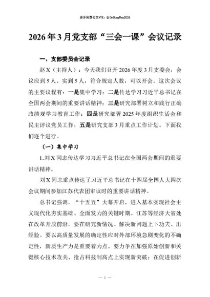 【七哥公文】2026年:2026年3月党支部“三会一课”会议记录+更多免费公文+VX:QiGeGongWen2024 - 七哥-AI智库