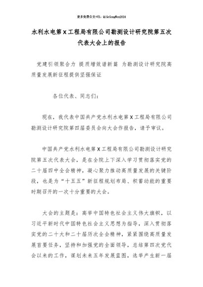 【七哥公文】2026年:水利水电第X工程局有限公司勘测设计研究院第五次代表大会上的报告_副本+更多免费公文+VX:QiGeGongWen2024
