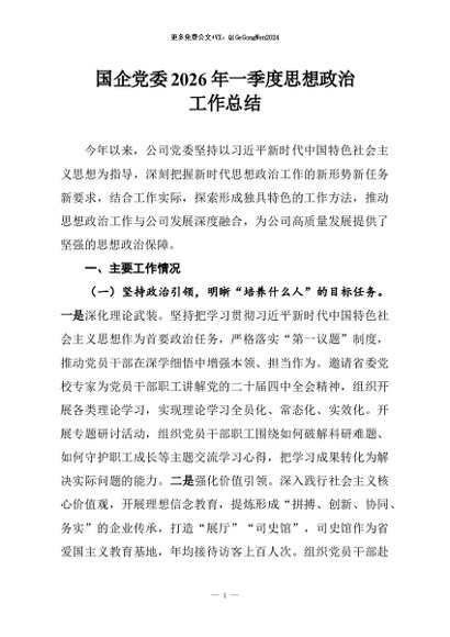 / 【七哥公文】2026年:国企党委2026年一季度思想政治工作总结+更多免费公文+VX:QiGeGongWen2024