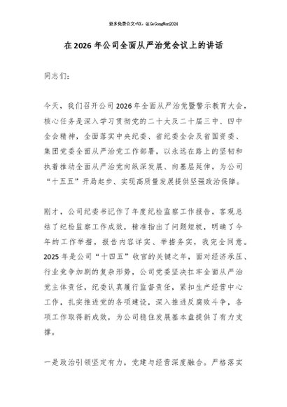/ 【七哥公文】2026年:在2026年公司全面从严治党会议上的讲话_副本+更多免费公文+VX:QiGeGongWen2024