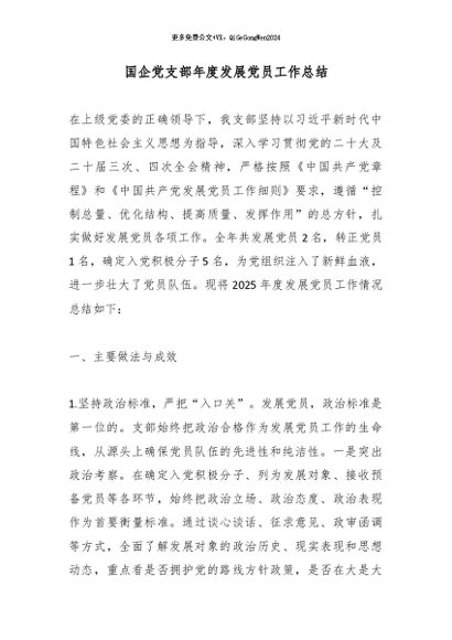 / 【七哥公文】2026年:国企党支部年度发展党员工作总结_副本+更多免费公文+VX:QiGeGongWen2024
