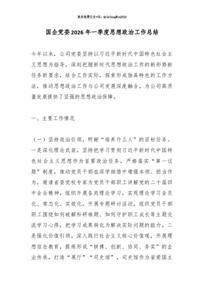 / 【七哥公文】2026年:国企党委2026年一季度思想政治工作总结_副本+更多免费公文+VX:QiGeGongWen2024