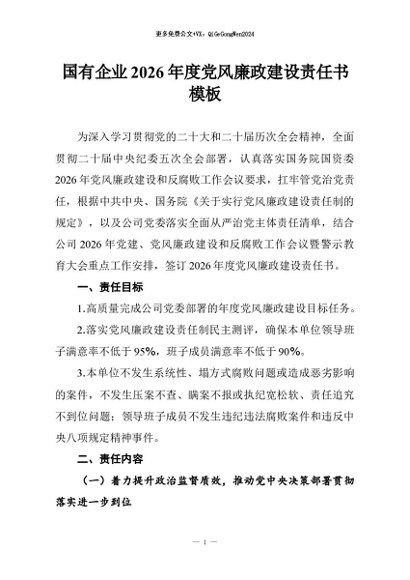 / 【七哥公文】2026年:国有企业2026年度党风廉政建设责任书模板+更多免费公文+VX:QiGeGongWen2024