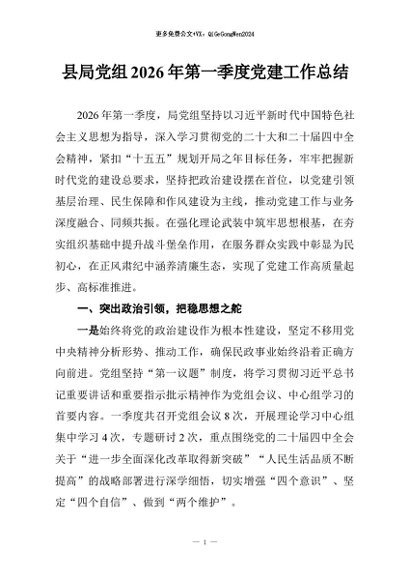 / 【七哥公文】2026年:县局党组2026年第一季度党建工作总结+更多免费公文+VX:QiGeGongWen2024