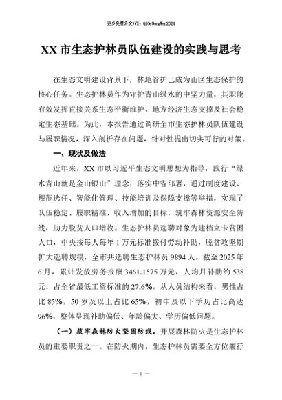 / 【七哥公文】2026年:XX市生态护林员队伍建设的实践与思考+更多免费公文+VX:QiGeGongWen2024
