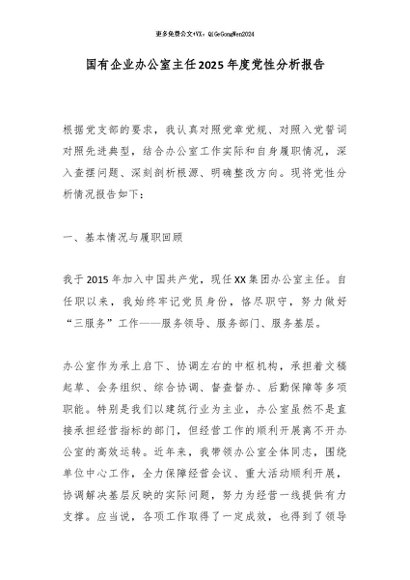 【七哥公文】2026年:国有企业办公室主任2025年度党性分析报告_副本+更多免费公文+VX:QiGeGongWen2024