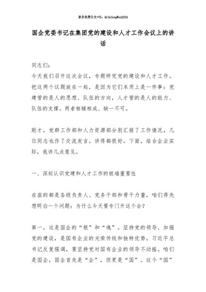 【七哥公文】2026年:国企党委书记在集团党的建设和人才工作会议上的讲话_副本+更多免费公文+VX:QiGeGongWen2024