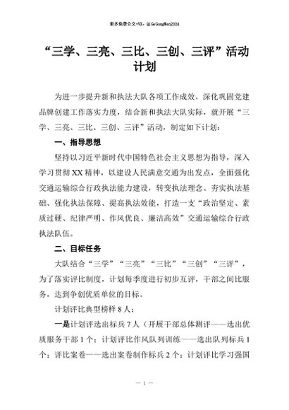 / 【七哥公文】2026年:“三学、三亮、三比、三创、三评”活动计划+更多免费公文+VX:QiGeGongWen2024