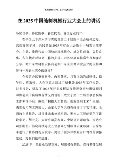 【七哥公文】2026年:在2025中国缝制机械行业大会上的讲话+更多免费公文+VX:QiGeGongWen2024