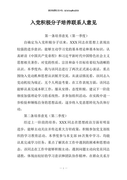 【七哥公文】2026年:入党积极分子培养联系人意见+更多免费公文+VX:QiGeGongWen2024