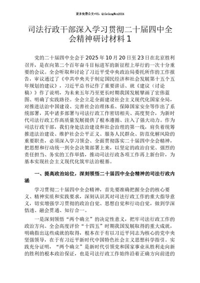 【七哥公文】2026年:司法行政干部深入学习贯彻二十届四中全会精神研讨材料1+更多免费公文+VX:QiGeGongWen2024