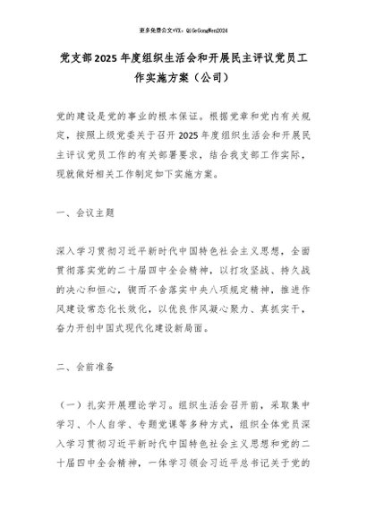 【七哥公文】2026年:党支部2025年度组织生活会和开展民主评议党员工作实施方案(公司)_副本+更多免费公文+VX:QiGeGongWen2024