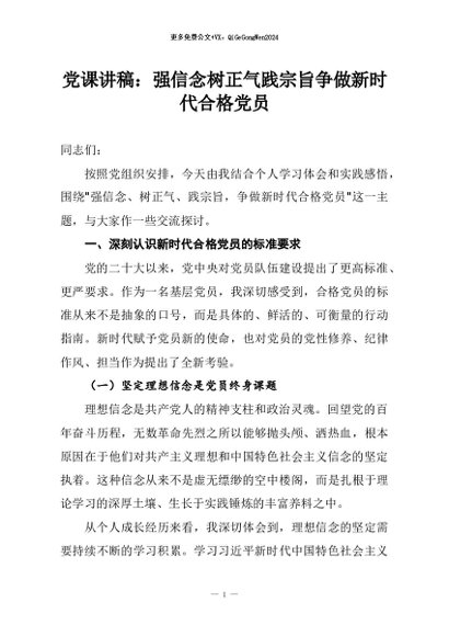 / 【七哥公文】2026年:党课讲稿:强信念树正气践宗旨争做新时代合格党员+更多免费公文+VX:QiGeGongWen2024