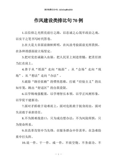 【七哥公文】2026年:作风建设类排比句70例+更多免费公文+VX:QiGeGongWen2024