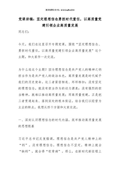 【七哥公文】2026年:党课讲稿:坚定理想信念勇担时代重任,以高质量党建引领企业高质量发展_副本+更多免费公文+VX:QiGeGongWen2024
