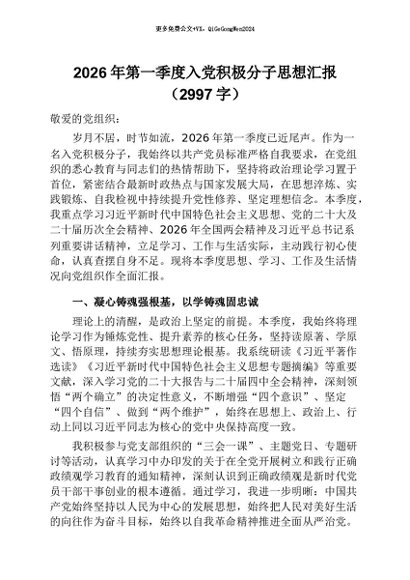 【七哥公文】2026年:2026年第一季度入党积极分子思想汇报(2997字)+更多免费公文+VX:QiGeGongWen2024