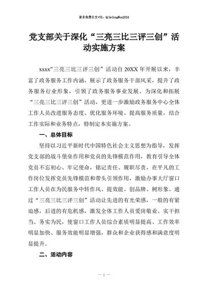 / 【七哥公文】2026年:党支部关于深化“三亮三比三评三创”活动实施方案+更多免费公文+VX:QiGeGongWen2024