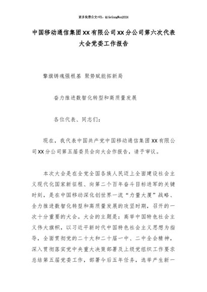 【七哥公文】2026年:中国移动通信集团XX有限公司XX分公司第六次代表大会党委工作报告_副本+更多免费公文+VX:QiGeGongWen2024