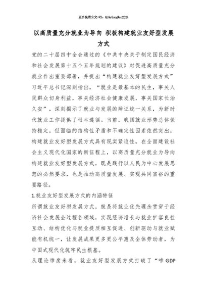 【七哥公文】2026年:以高质量充分就业为导向 积极构建就业友好型发展方式_副本+更多免费公文+VX:QiGeGongWen2024