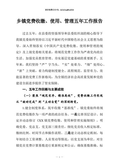 / 【七哥公文】2026年:乡镇党费收缴、使用、管理五年工作报告+更多免费公文+VX:QiGeGongWen2024