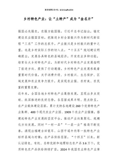 / 【七哥公文】2026年:乡村特色产业:让“土特产”成为“金名片”_副本+更多免费公文+VX:QiGeGongWen2024