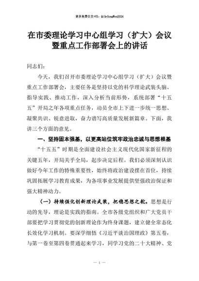 【七哥公文】2026年:在市委理论学习中心组学习(扩大)会议暨重点工作部署会上的讲话+更多免费公文+VX:QiGeGongWen2024