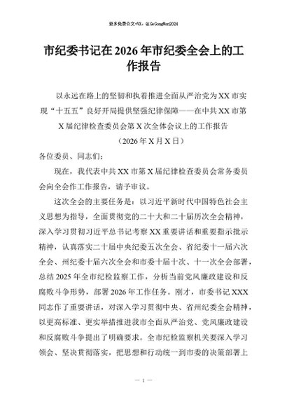 / 【七哥公文】2026年:市纪委书记在2026年市纪委全会上的工作报告+更多免费公文+VX:QiGeGongWen2024
