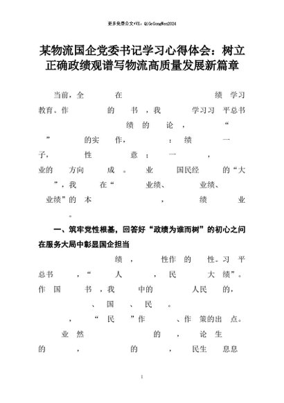 【七哥公文】2026年:某物流国企党委书记学习心得体会:树立正确政绩观谱写物流高质量发展新篇章+更多免费公文+VX:QiGeGongWen2024