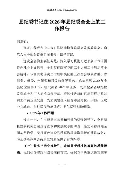 / 【七哥公文】2026年:县纪委书记在2026年县纪委全会上的工作报告+更多免费公文+VX:QiGeGongWen2024