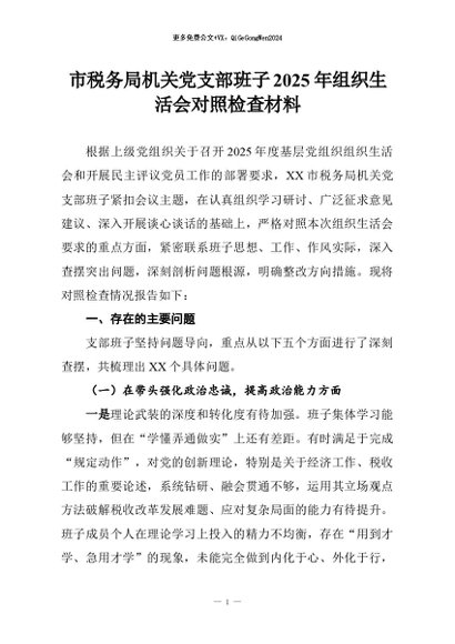 【七哥公文】2026年:市税务局机关党支部班子2025年组织生活会对照检查材料+更多免费公文+VX:QiGeGongWen2024
