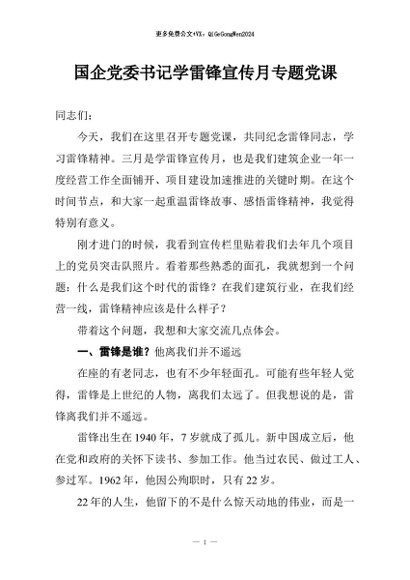 / 【七哥公文】2026年:国企党委书记学雷锋宣传月专题党课+更多免费公文+VX:QiGeGongWen2024