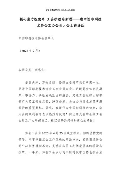 【七哥公文】2026年:凝心聚力担使命 工会护航启新程——在中国印刷技术协会工会会员大会上的讲话_副本+更多免费公文+VX:QiGeGongWen2024