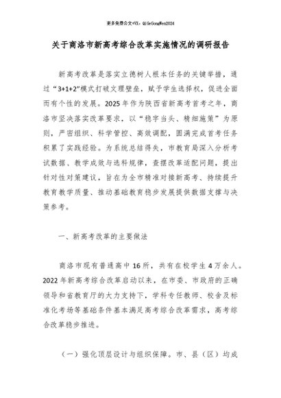【七哥公文】2026年:关于商洛市新高考综合改革实施情况的调研报告_副本+更多免费公文+VX:QiGeGongWen2024
