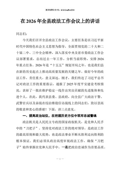 / 【七哥公文】2026年:在2026年全县政法工作会议上的讲话+更多免费公文+VX:QiGeGongWen2024