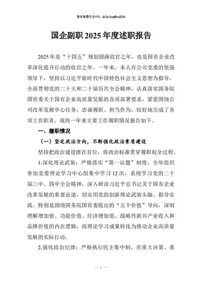 / 【七哥公文】2026年:国企副职2025年度述职报告+更多免费公文+VX:QiGeGongWen2024