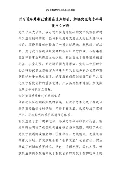 【七哥公文】2026年:以习xx总书记重要论述为指引,加快实现高水平科技自立自强_副本+更多免费公文+VX:QiGeGongWen2024
