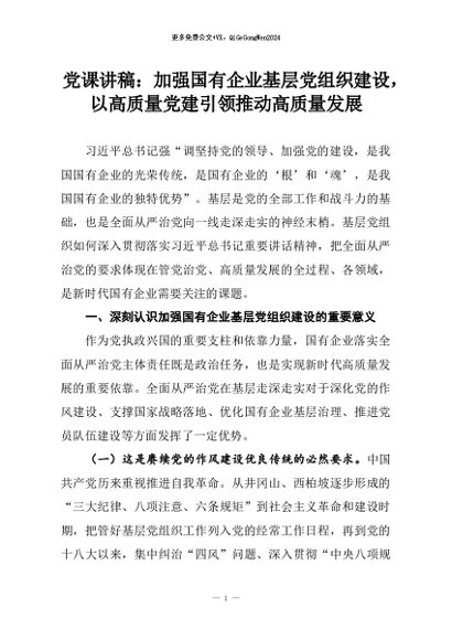 【七哥公文】2026年:党课讲稿:加强国有企业基层党组织建设,以高质量党建引领推动高质量发展+更多免费公文+VX:QiGeGongWen2024