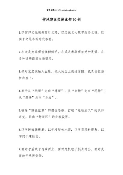 / 【七哥公文】2026年:作风建设类排比句70例_副本+更多免费公文+VX:QiGeGongWen2024