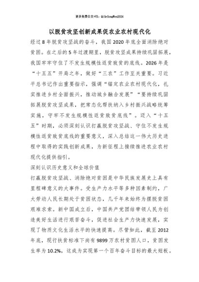 / 【七哥公文】2026年:以脱贫攻坚创新成果促农业农村现代化_副本+更多免费公文+VX:QiGeGongWen2024