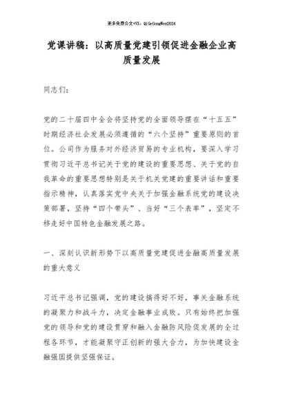 【七哥公文】2026年:党课讲稿:以高质量党建引领促进金融企业高质量发展_副本+更多免费公文+VX:QiGeGongWen2024