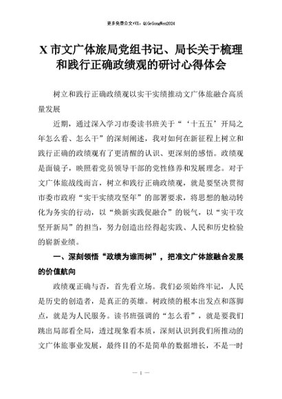 【七哥公文】2026年:X市文广体旅局党组书记、局长关于梳理和践行正确政绩观的研讨心得体会+更多免费公文+VX:QiGeGongWen2024