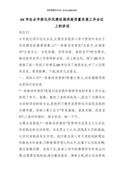 【七哥公文】2026年:XX市在全市深化作风建设推进高质量发展工作会议上的讲话_副本+更多免费公文+VX:QiGeGongWen2024