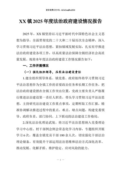 / 【七哥公文】2026年:XX镇2025年度法治政府建设情况报告+更多免费公文+VX:QiGeGongWen2024